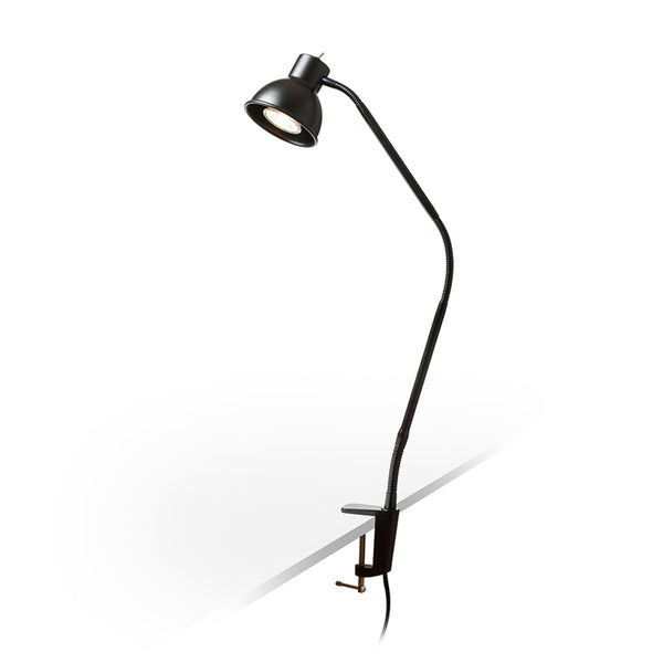 LED лампа с конусовиден абажур и гъвкава шийка. Управлението е разположено на клипса на лампата. Максималният обхват на клипса е 2,5 cm. Тристепенно затъмняване.