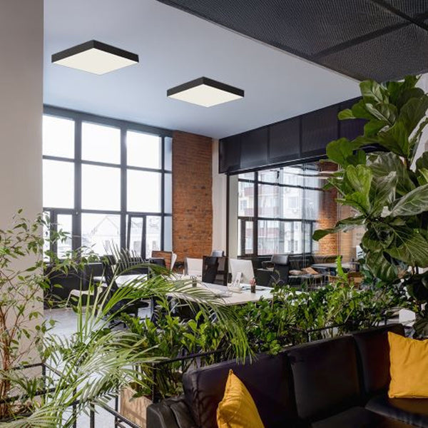 Плафон с вграден LED и минималистична рамка. Осветителното тяло включва вграден превключвател за промяна на цветната температура на светлината (3000K, 4000K, 6500K).