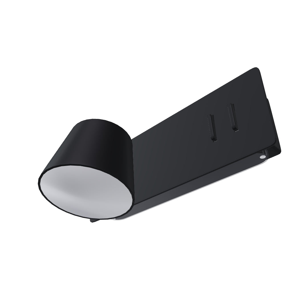 Стенна лампа с вграден LED и въртящ се рефлектор, осигуряваща еднопосочно индиректно осветление. Рефлекторът и индиректното осветление се управляват от отделни ключове на основата.