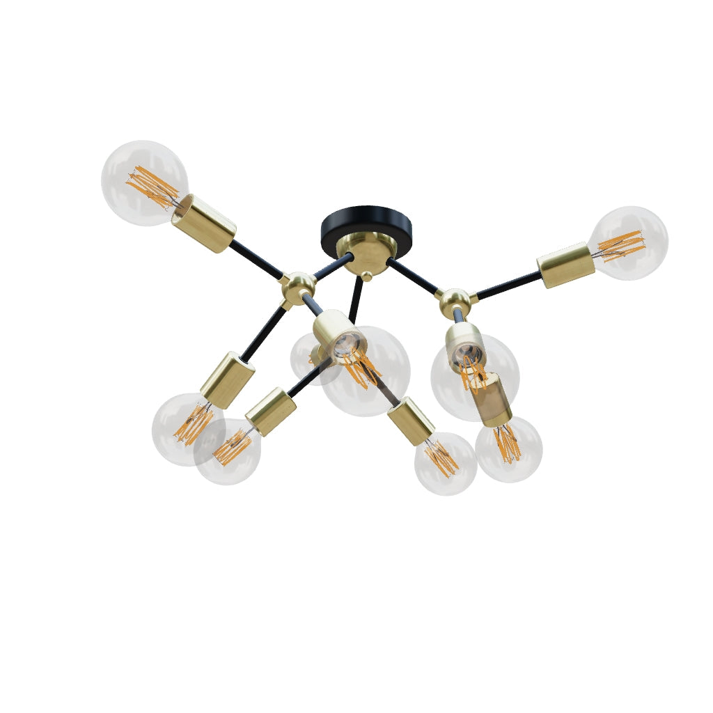 Дизайнерска лампа за таван с декоративни месингови капачки за фасунгите. Подходяща за LED източници на светлина с E27 фасунга.