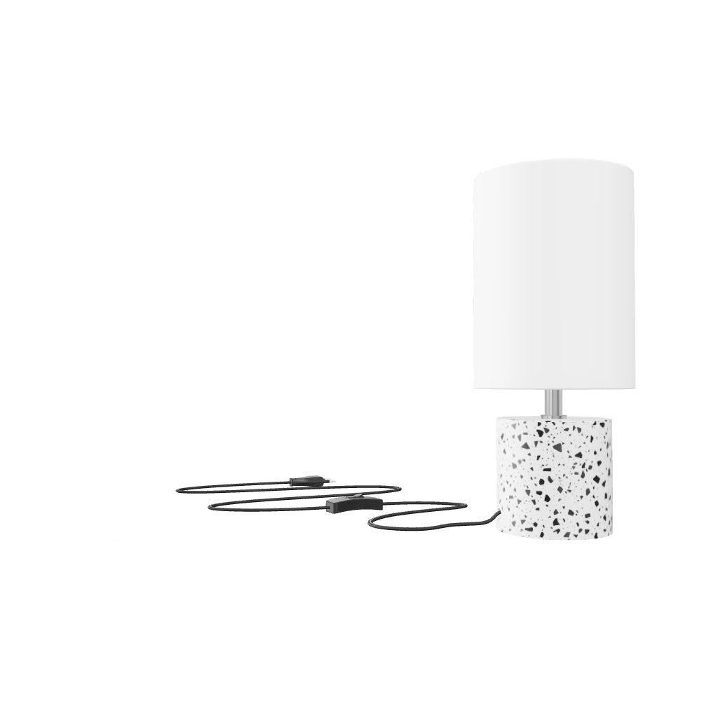 Минималистична настолна лампа с цилиндрична форма и текстилен абажур. Всяка основа има свое уникално покритие.