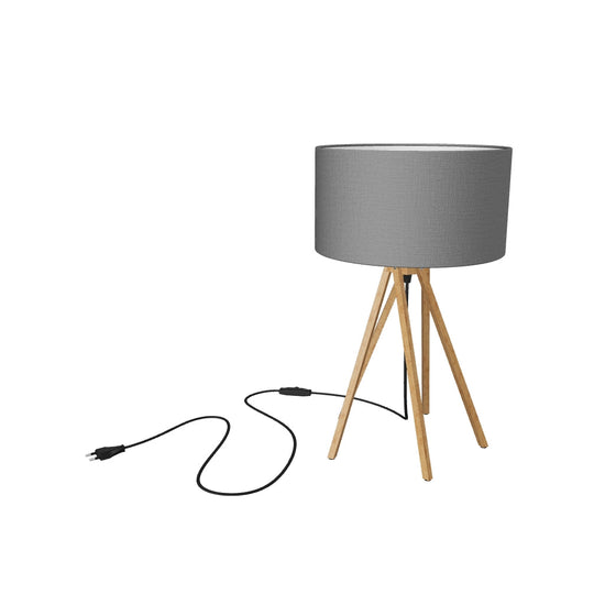 Настолна лампа от бамбук с текстилен абажур. Този артикул се доставя разглобен.