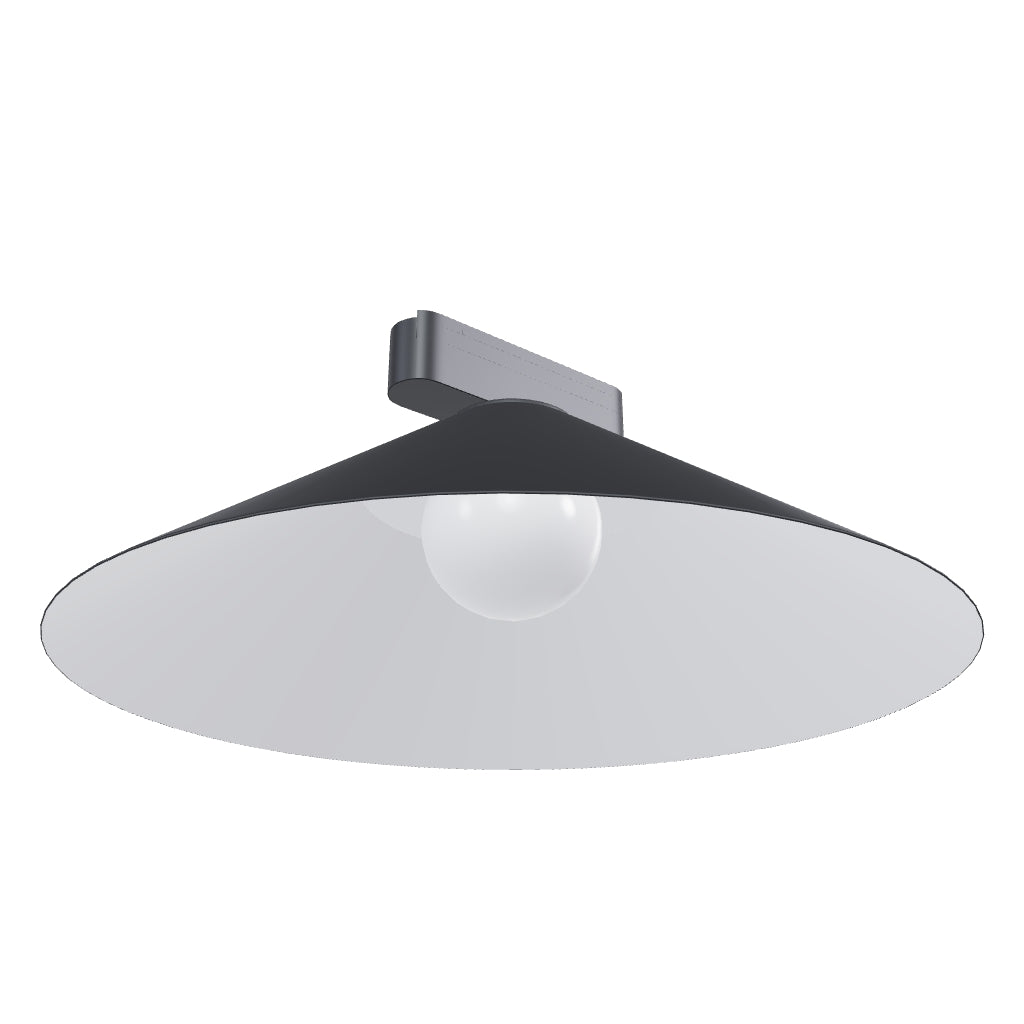 LED осветително тяло с лакиран метален абажур. Осветителното тяло е предназначено за използване със система WAVE 24V=. За свързване на осветителното тяло към текстилната лента WAVE е необходимо да поръчате 2 броя проводящи клипове R14328. Възможност за димиране при управление чрез TUYA гейт или TUYA дистанционно управление.