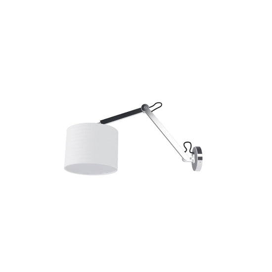 Стенна лампа с текстилен aбажур и регулируемо рамо.