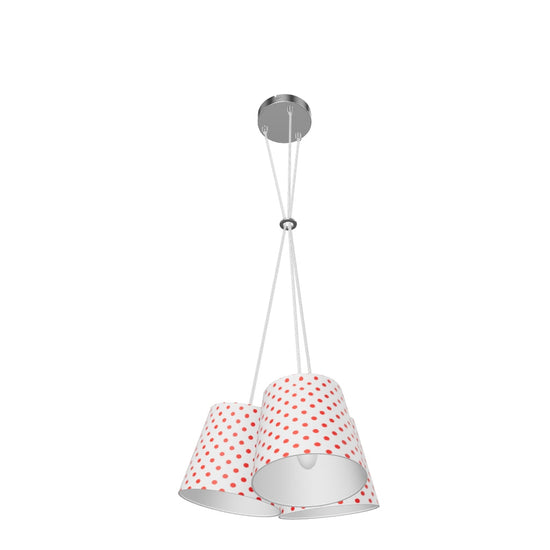 Висящо осветително тяло с една основа и три текстилни абажура, за три светлинни източника Е14.