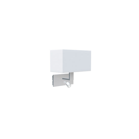 Стенна лампа с текстуриран текстилен абажур и 3W LED светлина за четене, като и двете могат да се управляват индивидуално чрез отделни превключватели в долната част на основата.