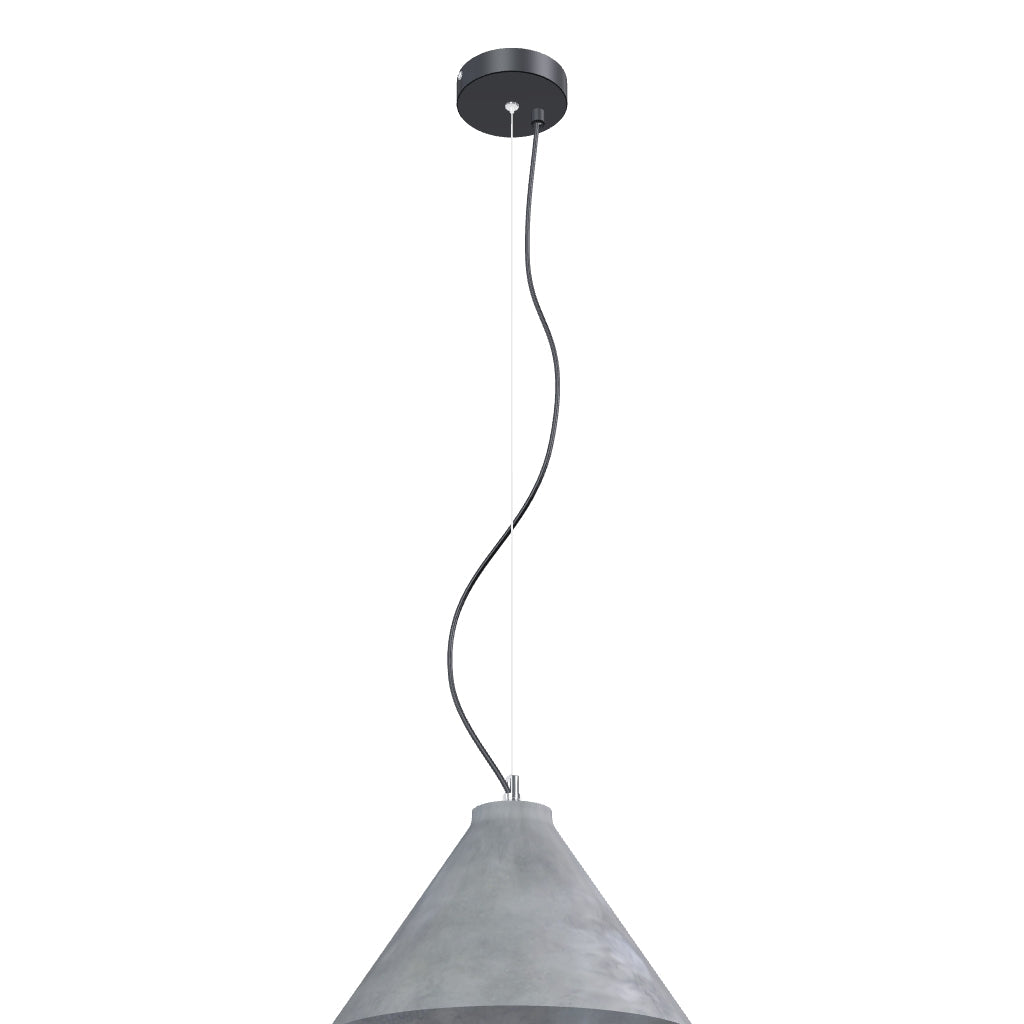 Масивно бетонно висящо осветително тяло, окачено на жица, която е отделена от кабела. За източници на светлина E27.